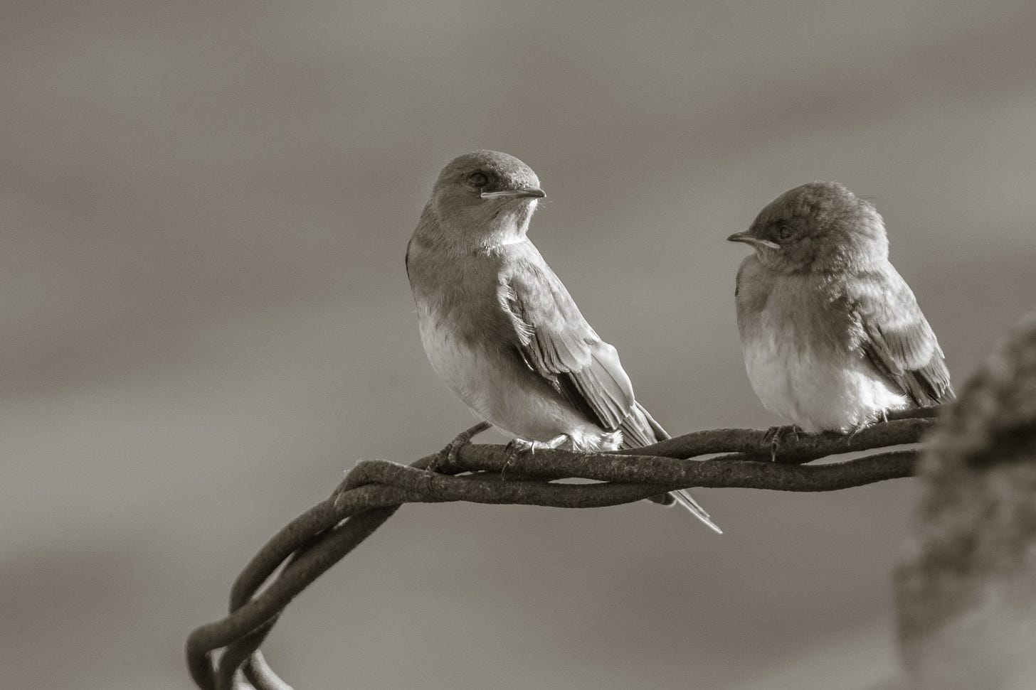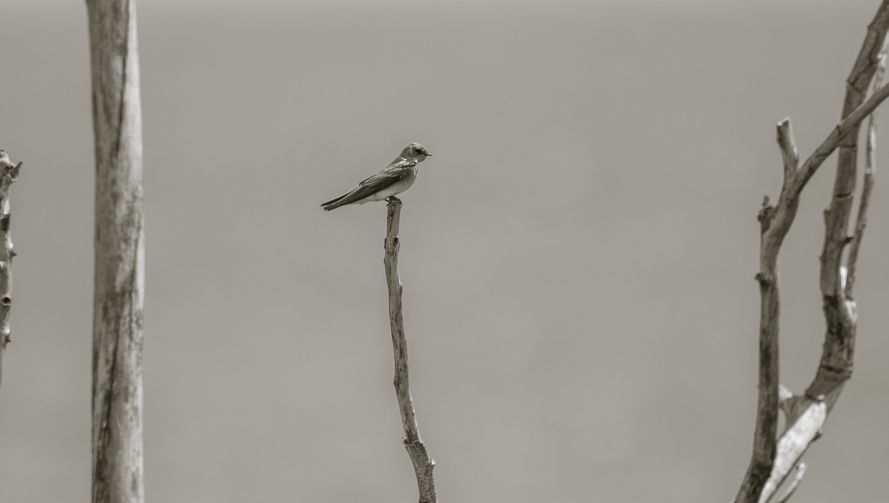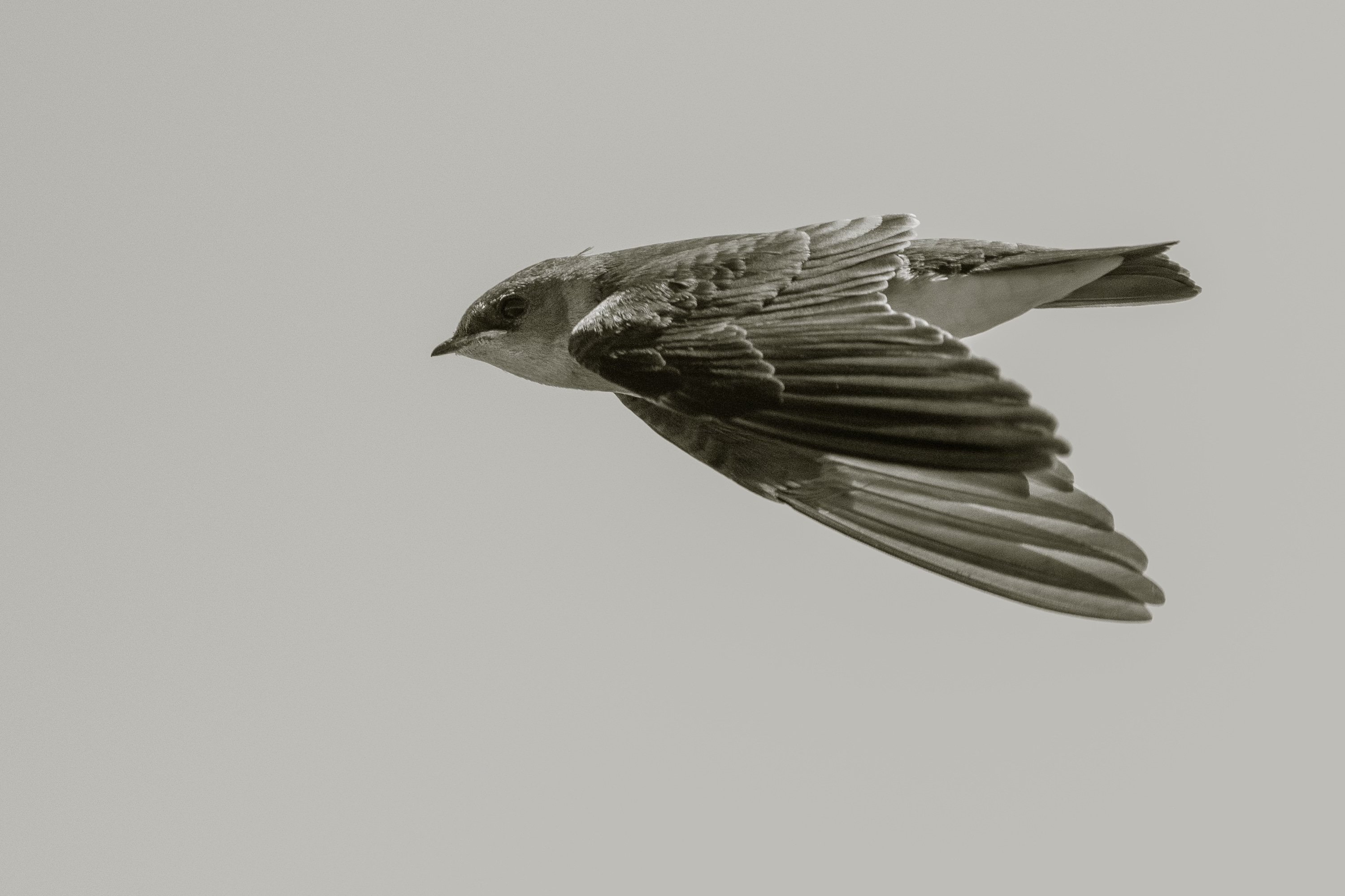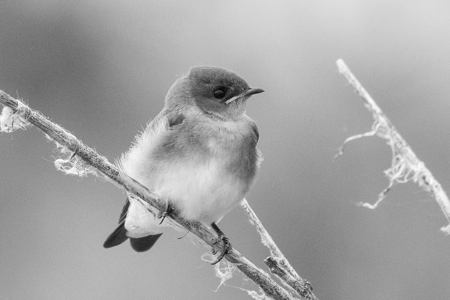 Northern Rough-winged Swallows prefer open areas near water, making them a perfect fit for Park 566, my favorite lakeside grassland park. Often present there in large numbers, they have given me plenty of photo-ops. And the more I got to know them and study their photos, the more I came to feel that color was getting in the way of appreciating them fully. Whatever the background—deep blue sky, vibrant green leaves—it seemed the surrounding setting always stole the bird’s thunder.